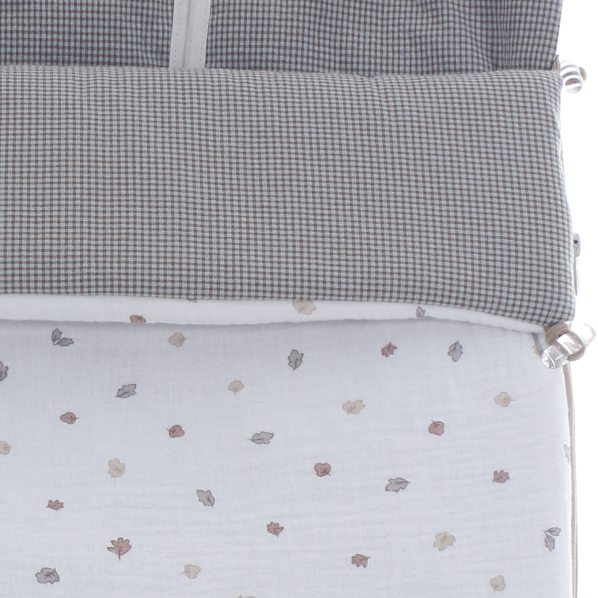 En dicha espalda, dispone de ojales para adaptarlo al paso del arnés de la mayoría de las sillas de paseo del mercado. *Los ojales están realizados pero cerrados, garantizando así el estreno del producto, el cual aconsejamos sean abiertos cuidadosamente por el comprador final o el punto de venta autorizado en el cual ha sido adquirido mediante tijeras/abre-ojales, cortando por la mitad del ojal sin llegar hasta el final del cosido del mismo.
